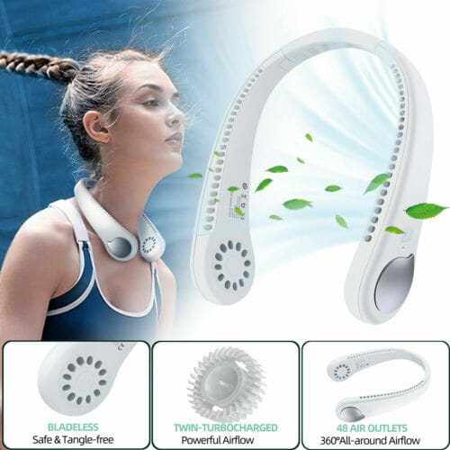 • Convenient Hands-Free Operation – This air cooler’s wireless and wearable design keeps your hands free, making it ideal to be worn on hot sunny days and is suited for indoor and outdoor use. It’s like having a portable air conditioner wherever you go